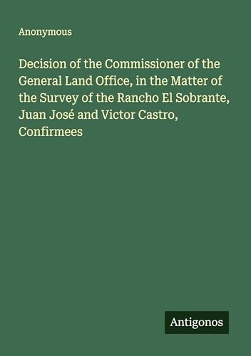Decision of the Commissioner of the General Land Office, in the Matter of the Survey of the Rancho El Sobrante, Juan José and Victor Castro, Confirmees