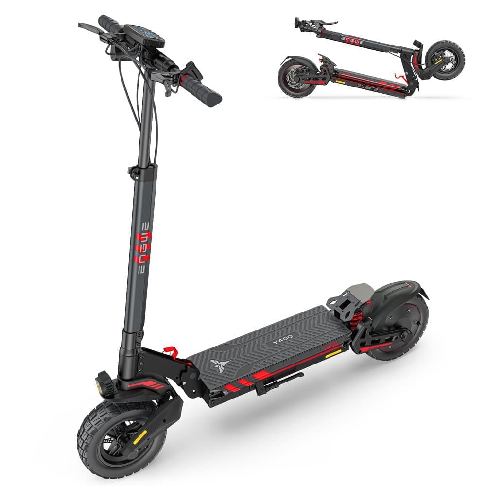 ENGWE Y400 elektrisk scooter 648Wh batteri, 50 km räckvidd, 500W motor, 10*2,75 tum tjocka däck, IPX5 vattentät–svart och röd