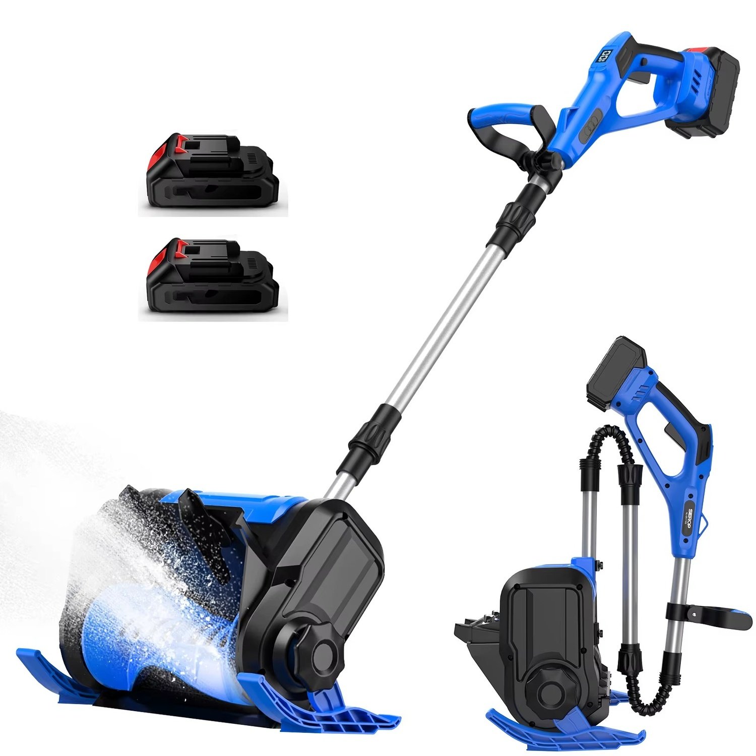 Minisnöslunga, sladdlös elektrisk snöskyffel, batteridriven snöslunga, sladdlös snöslunga med kontrollbox för 4 hastigheter (2 batterier och laddare ingår), för klar snö från vägar