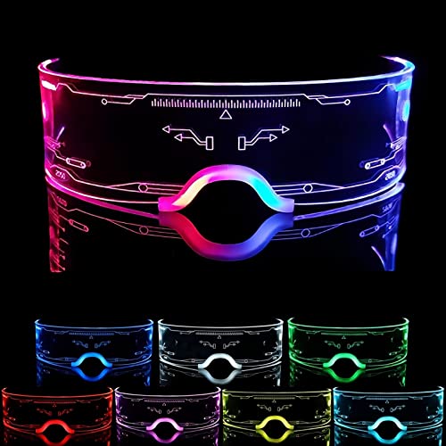 NIWWIN LED-ljusglasögon, futuristiska ljusglasögon, El Wire-glas med 7 typer av neon elektroniska glasögon, festtillbehör (symboler)