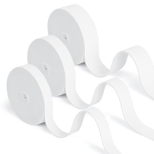Romon Sömnadselastisk, 18 m elastisk sömnad, 3 rullar i vitt elastiskt band, elastisk stickning sömnad hem sömnad gör-det-själv hantverk, brett elastiskt band