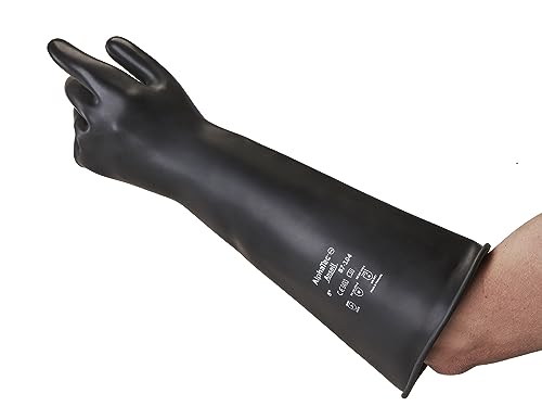 Ansell AlphaTec 87-104 kemikalieskyddshandskar latex, skydd för mekaniskt, industriellt och kemiskt arbete, flexibilitet och elasticitet, arbetshandskar kvinnor män,8,5, svart (1 par) M