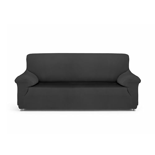 ELEOPTION Soffa, överkast, sofföverdrag, stretch, elastiskt sofföverdrag, överdrag i olika storlekar och färger (3-sitsig för sofflängd, 170–220 cm, grå)