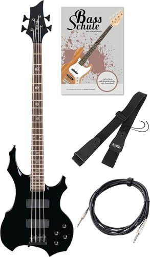 Rocktile Pro BB104-B BattleBone Elbas Set - Tung Design Med 2 Pickups Och 2 Ljudregulatorer - Inklusive Gitarrrem, Kabel Och Skola - Svart