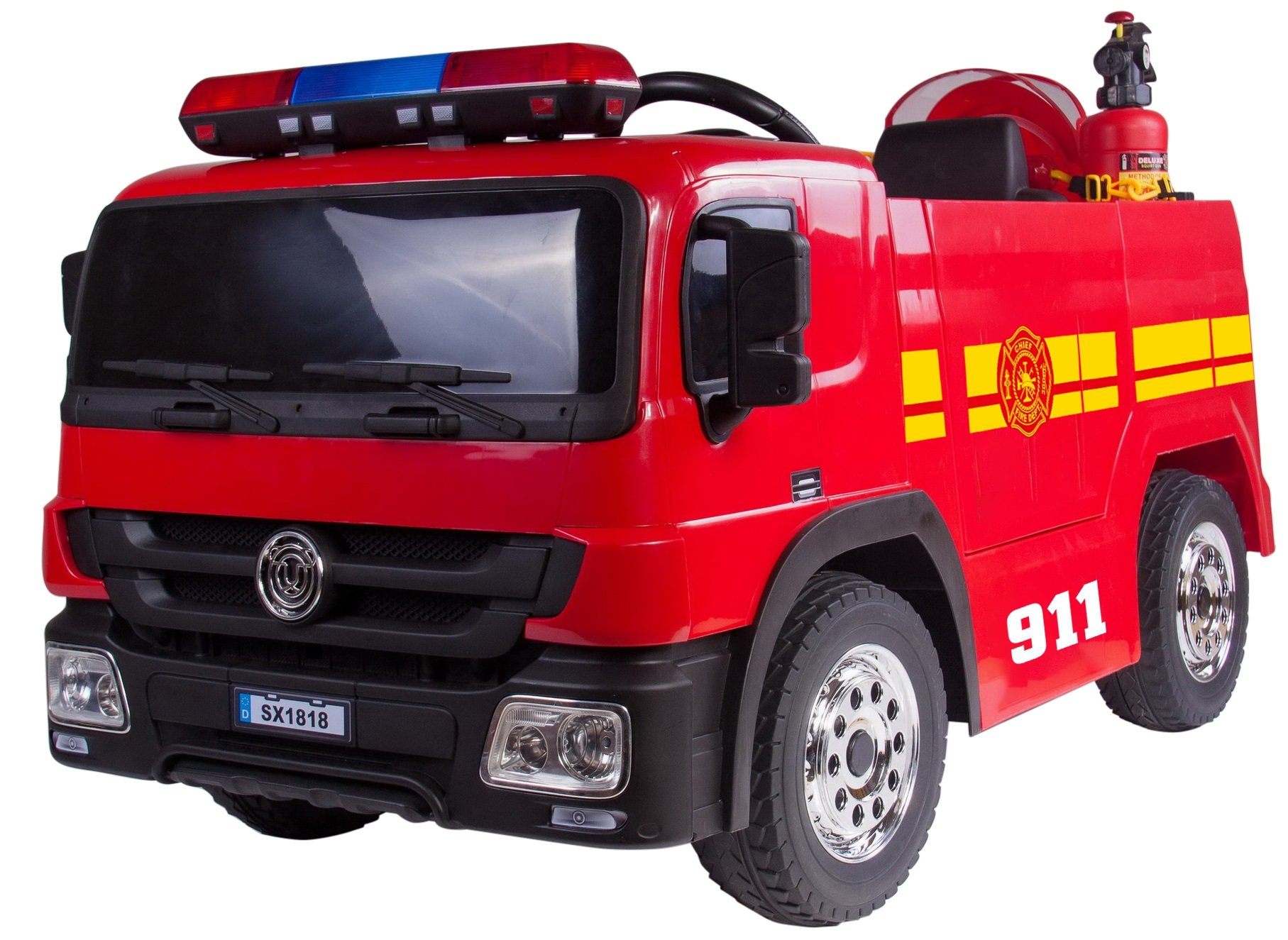 Brandbil Elbil till Barn 12V m/2.4G, Gummidäck, hjälm, vattenpistol, etc.