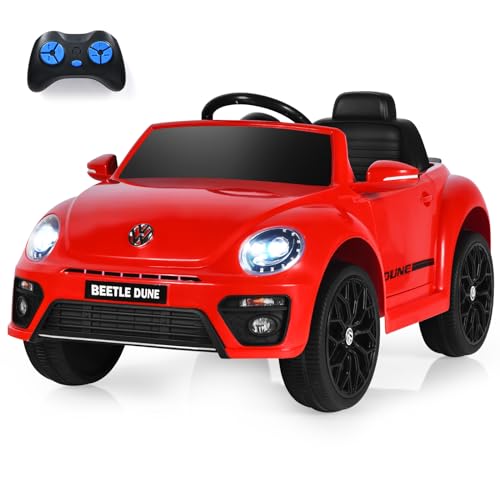Costway Elbil för barn, VW-bubbla, barnbil med musik och 2 belysningslägen, inkl. 2,4 G-fjärrkontroll, elfordon för barn från 3 år (röd)