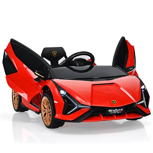 GOPLUS Elbil för barn, Lamborghini, barnbil med fjärrkontroll, barnfordon med Bluetooth och USB, med tuta och musik, 3–5 km/h, kan åka framåt och bakåt, för barn på 3–8 år (röd)