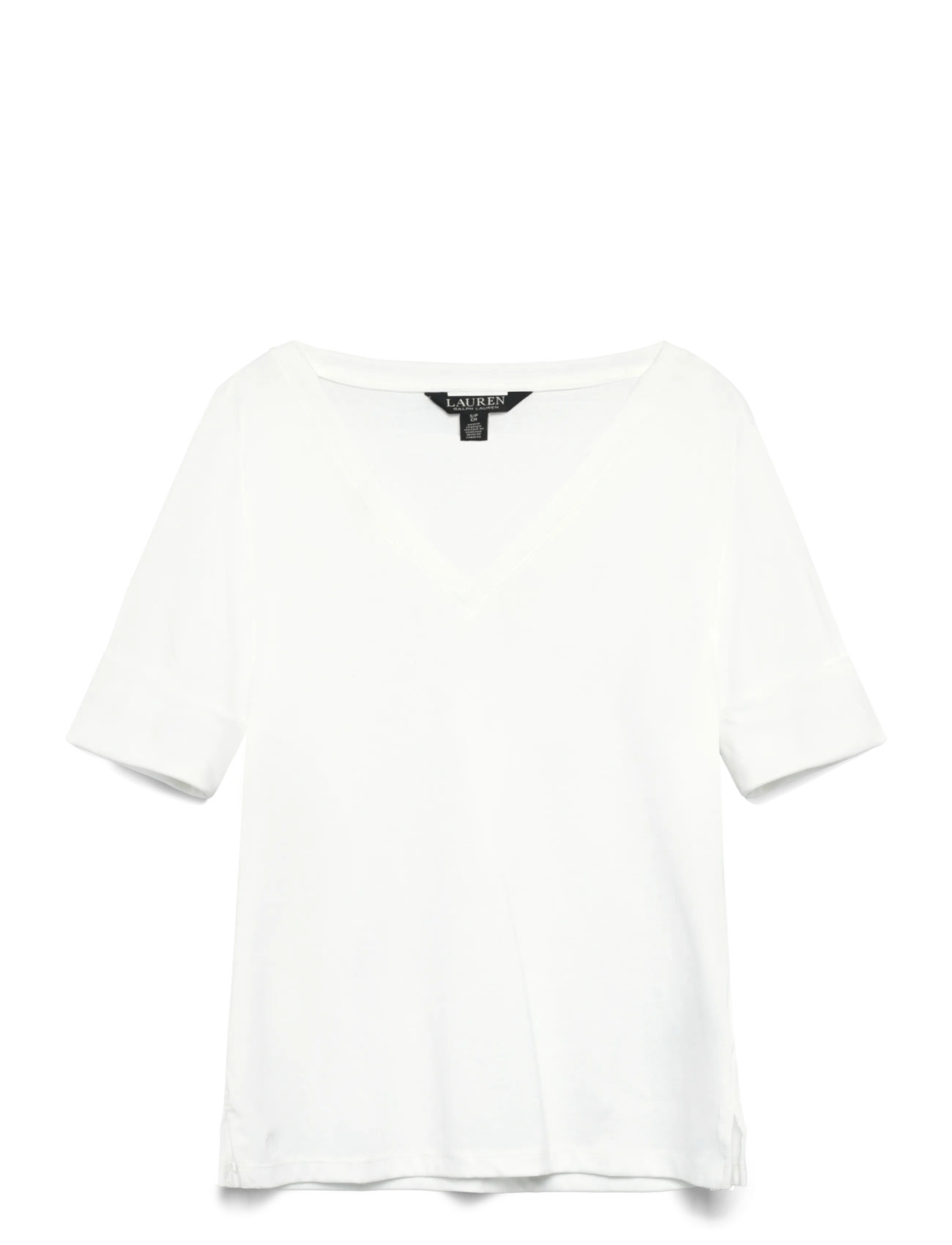 Lauren Ralph Lauren Stretch Cotton Elbow-Sleeve V-Neck Tee Vit