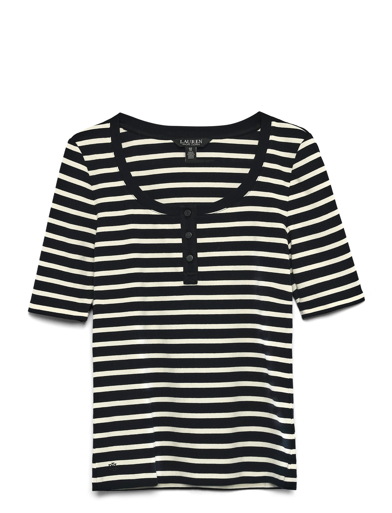 Lauren Ralph Lauren Striped Elbow-Sleeve Henley Top Svart