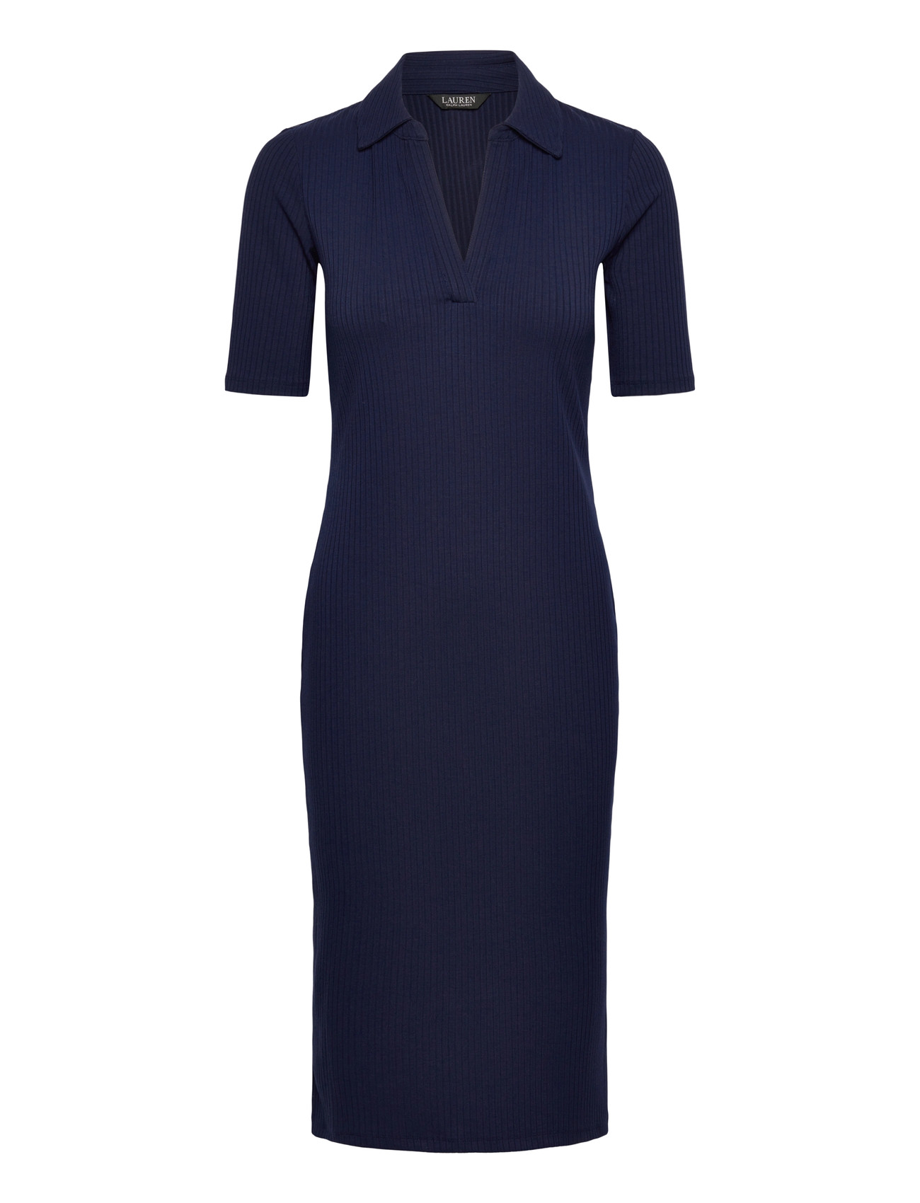 Lauren Ralph Lauren Rib-Knit Elbow-Sleeve Polo Dress - Navy - L