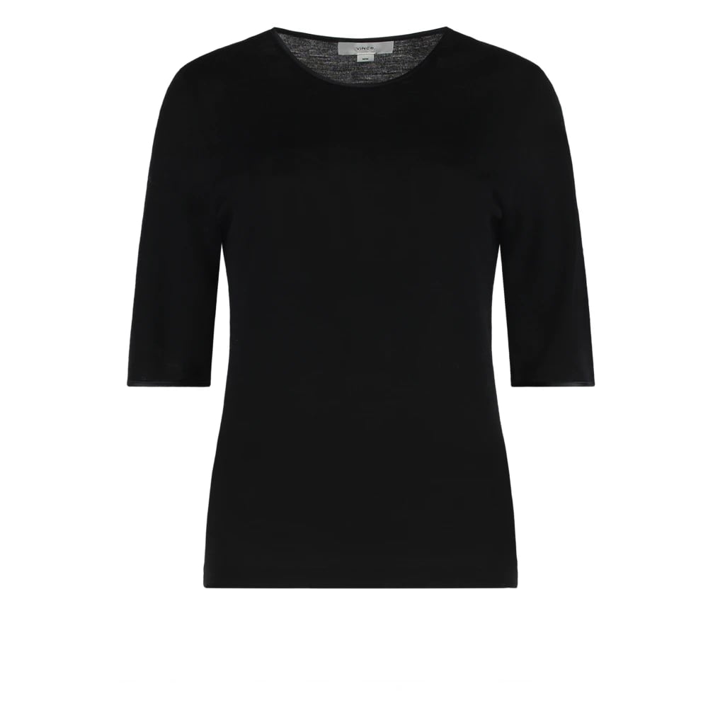 Vince, Stickade Tröjor , Dam, S, Satin-Trim Wool Elbow-Sleeve T-Shirt