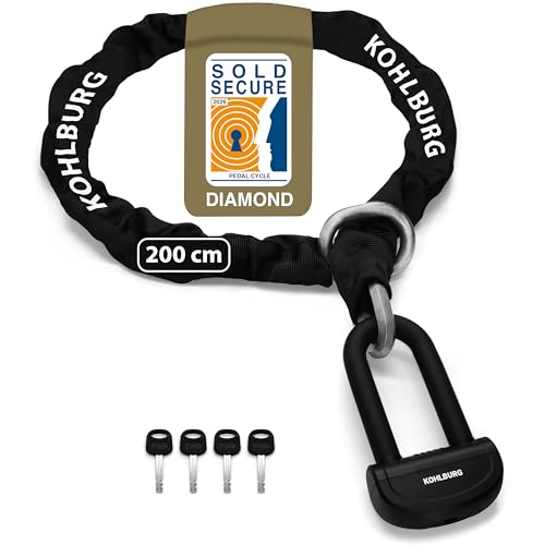 KOHLBURG 8 kg massivt motorcykel säkerhetskättinglås - 210 cm långt med vår högsta säkerhetsnivå 15plus av 15 - kraftig 13 mm stålkätting som stöldskydd för motorcykel, scooter & elcykel