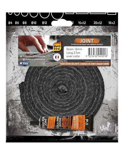 pyrofeu Pyro Fire eldfast tätning 6 mm x 2,5 m + limrör, vinylfiber, svart