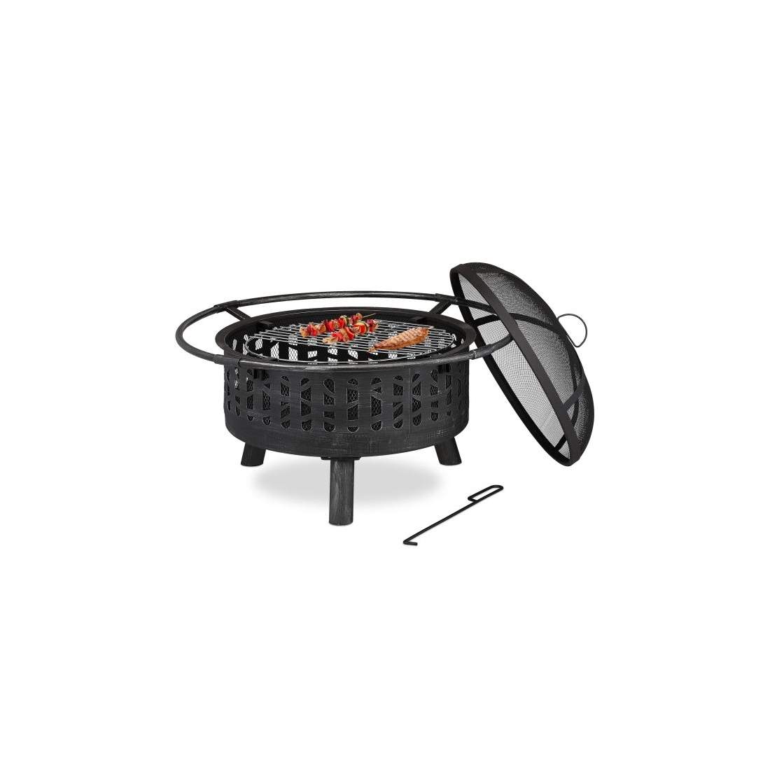 Relaxdays XL Eldskål, grillgaller, Öppen spis, Eldstad, 56,5 cm, svart