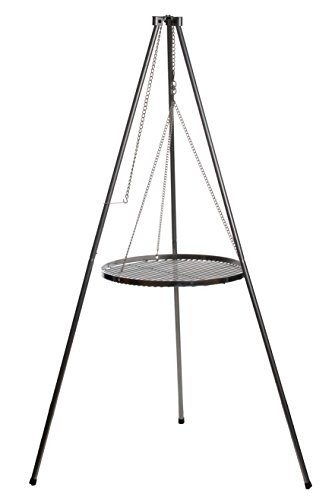 Brandsseller grillram med trebensstativ 1,40 m – höjdjusterbart grillstativ av rostfritt stål, galvaniserat stål inkl. kedjor – för vridbar grill och eldskål – utomhus, BBQ, camping