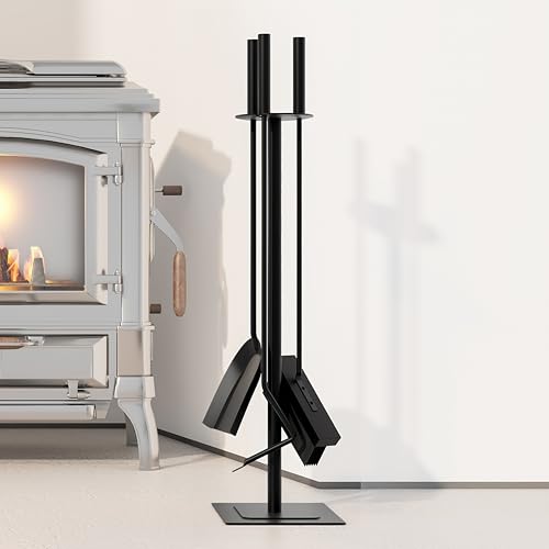 Kingson 4 delar vedbrännare tillbehör med borste, poker och spade, inomhus eldstad följeslagare set 15 x 15 x H 60 cm