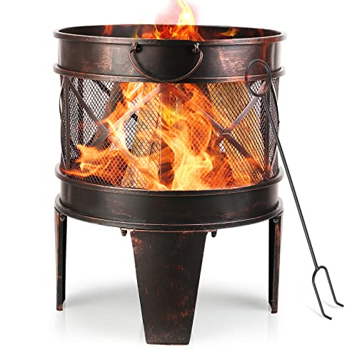 Eldskål Ø45 x 42cm gjord av stål eldstad med poker askfat eldskålar för trädgård, balkong terrass, utomhus BBQ camping svart |
