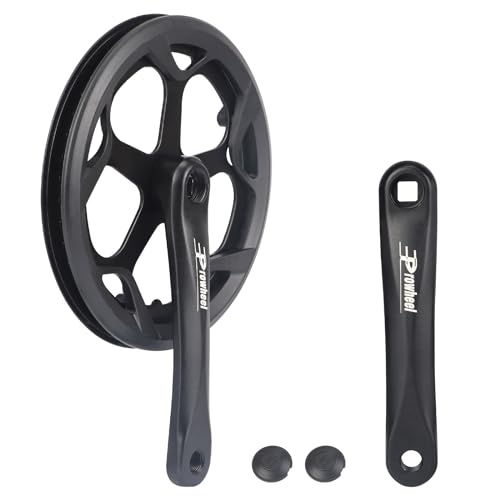 WEEROCK Prowheel E Bike/Bike Crankset 1 Piece/Single 52T Chainring Crankset with Aluminium Alloy Double Chain Cover 170mm Arm for Single Speed and 6/7/8 Speeds Electric Bike,Bicycles, Folding Bicycle