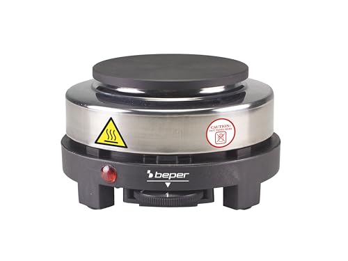 BEPER P101PIA003 Electric Cooker, Cast Iron/Stainless Steel, 500W, 5 Cooking Levels, Overheat Protection, Silver/Black