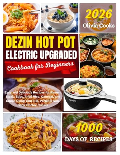 DEZIN HOT POT ELECTRIC UPGRADED COOKBOOK FOR BEGINNERS: Easy And Delicious Recipes For Ramen, Steak, Eggs ,Fried Rice ,Oatmeal And Soups Using Your 1.5L Portable Non-Stick Electric Cooker.