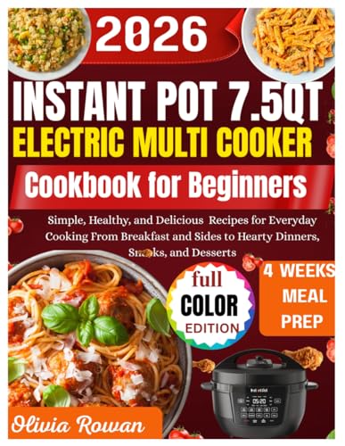 instant Pot 7.5QT Electric multi-Cooker Cookbook for beginners: Simple, Healthy, and Delicious Recipes for Everyday Cooking From Breakfast and Sides to Hearty Dinners, Snacks, and Desserts.