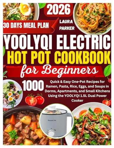 YOOLYQI ELECTRIC HOT POT COOKBOOK FOR BEGINNERS: Quick & Easy One-Pot Recipes for Ramen, Pasta, Rice, Eggs, and Soups in Dorms, Apartments, and Small Kitchens Using the YOOLYQI 1.5L Dual Power Cooker.