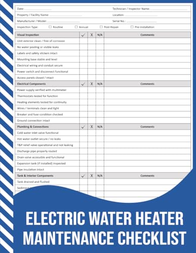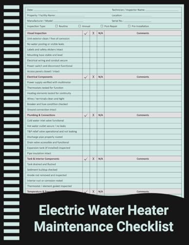 Electric Water Heater Maintenance Checklist: Electrical, Plumbing, and Safety Inspection Record for Technicians, Maintenance Teams, and Facility Managers.