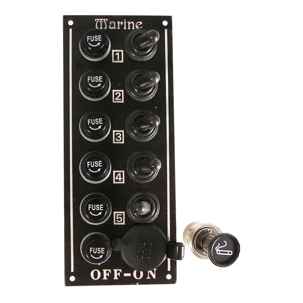 Marine Town 5 Switches Electric Panel With Cigarette Lighter Silver 170 x 70 mm