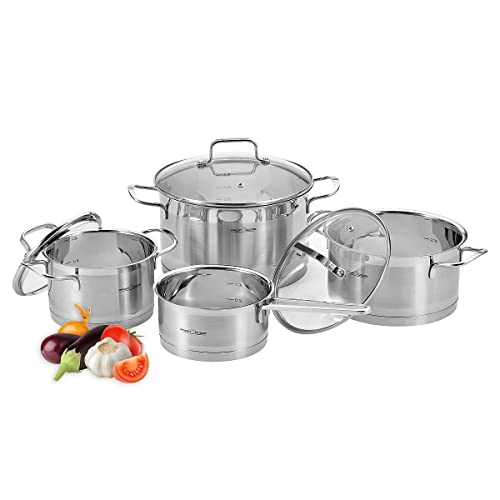 ProfiCook PC-KTS 1224 Induction Cooking Pot Set, 7 Pieces, for All Hobs, Induction Electric Hob, Ceramic Halogen and Gas Hob, Stainless Steel Pot Set with Lid, Scale on The Inside