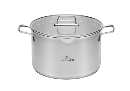 Gerlach 1760 Ambiente Cooking Pot 10 L Induction Electric Hob Gas Hob Ceramic Hob Oven Safe Dishwasher Safe Cooking Pot Induction Pot Diameter 28 cm with Tempered Glass Lid