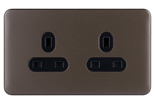 Schneider elektrisk skärare elektrisk tätning skruvlös deco 2G 13A oväxlad Socket BSB, 13A 2 gang unswitched, Mocha Bronze/Black