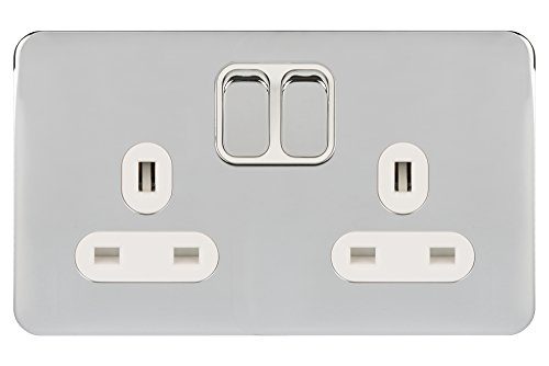 Schneider Electric Lisse Skruvlös Deco 1G 13A Sw Socket BSS, 2 Gang - 2 Pole, Polished Chrome/White