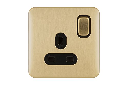 Schneider Electric Lisse Skruvlös Deco 1G 13A Sw Socket BSS, 1 Gang - 2 Pole, Satin Brass/Black