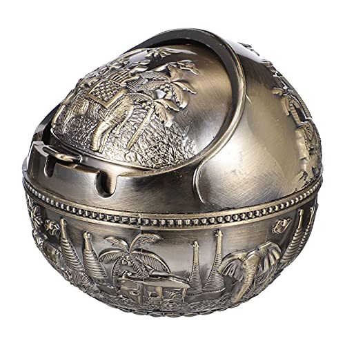 BSTKEY Vintage vindtätt askfat med lock – retro elefant modellering bordsskiva askfat cigarett cigarr, askhållare för utomhus- och inomhusbruk, retro hem kontor dekoration (röd brons)