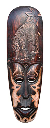 Wogeka - 50 cm elefant-väggmask – i etnisk stil Afrika av trä som en presentidé till jul födelsedag dekoration – handarbete snideri av Bali Mask 45,50 (mask 45,50 c)