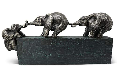 FeinKnick Skulptur "familje" - tidlös symbol för sammanhållning i familjen och i teamet - dekoration gjord av marmorit 43 cm lång - dekorativ elefant väl lämpad som en gåva