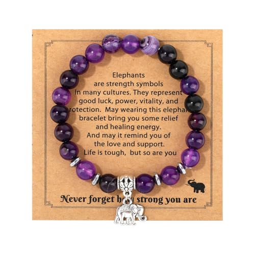 Mikovivi Get Well Gåvor för Kvinnor, Amethyst Armband med Elefant Pärlhänge Dekoration Kristallpärlarmband för Inspirerande Gåvor