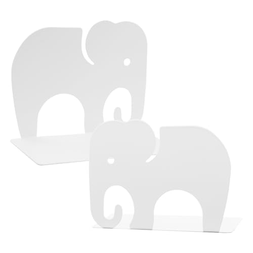 1 par vita elefantbokstöd i metall, kreativa djur liten elefant halkfri förtjockning järn bokstöd skrivbordsorganisatör hållare för barn bibliotek hem skola kontor dekoration