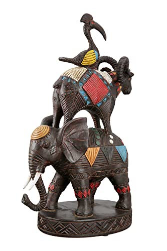 Casablanca Dekorativ djurfigur, skulptur av konstharts – elefant väduren tukan – dekoration vardagsrum – brun med färgglada ornament – höjd 40 cm