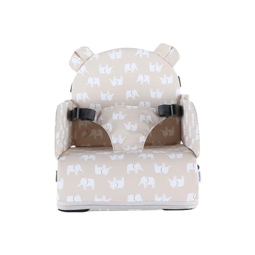 NOUKIE'S - 9 månader till 3 år gammal elefant barnstol med ryggstöd och kudde - lätt, vikbar och nomad - sele, säkerhet - vattentät, avtagbar och tvättbar - max 13 kg - resor