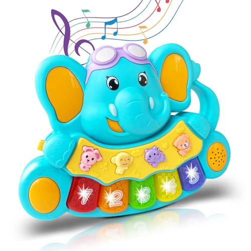 Baby-piano, leksak, 6+ månader, musikleksak, 6 till 12 månader, tidigt lärande, elefant, tangentbord, musik, lyser upp, spädbarn, bebisar, för 6–8 månader, 1-årspresent, för pojkar, flickor