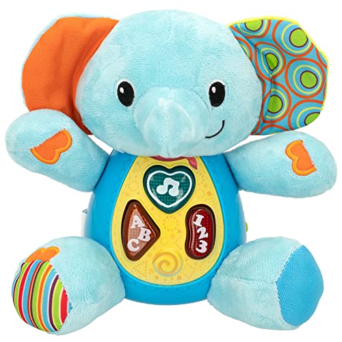 winfun 85178 mjuk leksak elefant för spädbarn med tal och färgglada lampor, språk: spanska