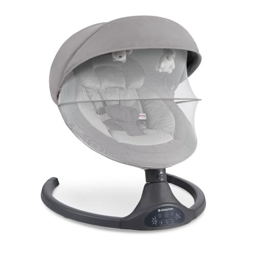 KikkaBoo Codie Babygunga, elektrisk för nyfödda med musik – babygungstol upp till 9 kg, 5 svängnivåer, Bluetooth, justerbart ryggstöd, 10 melodier, ljusgrå
