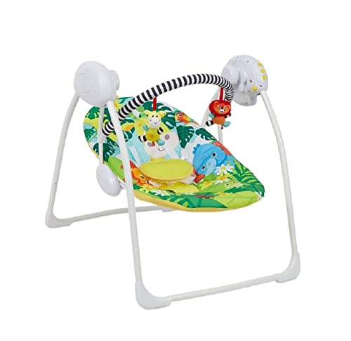 LADIDA Vikbar elektrisk babygunga, safari-design, lugnande musik, lämplig för nyfödda