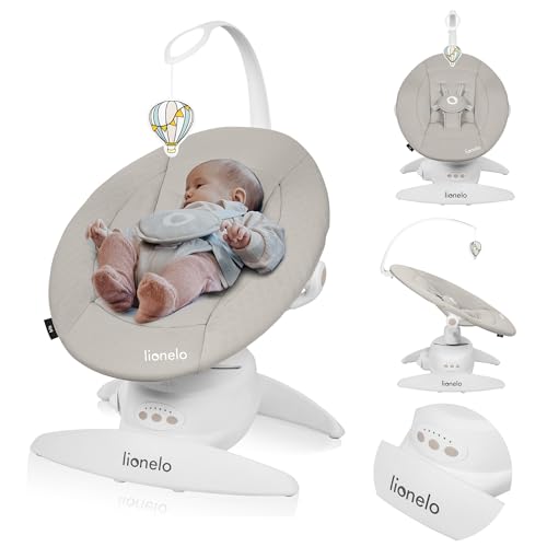 LIONELO Iris Elektrisk Babygunga 360° Rotation – Babysitter för Barn upp till 9 kg med Automatisk Gungning, 5 Hastigheter, 3 Lutningslägen, Musik, Tyst Drift, 5-punktsbälte & Tvättbart Överdrag, Beige