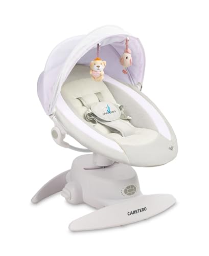 CARETERO – elektrisk babygunga, babygunga, elektronisk med tre funktionslägen – 360 grader – myggnät – intuitiv kontrollpanel – 360 graders rotation – inställning liggande position – lila