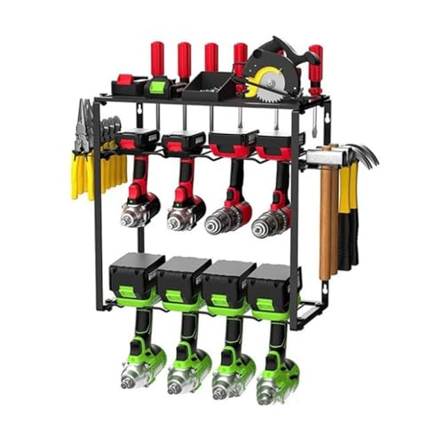 aleawol 40 cm verktygsförvaring väggfäste, 8 fack Heavyduty elektrisk borr förvaringshylla 3 nivåer verktygsstativ med sidoskruvmejselram