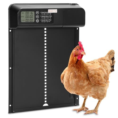 VAYALT Senaste automatiska kycklingluckor, dörröppnare, manuellt styrd kycklingluff, dörröppnare, med LED-skärm, timer, kycklinglucka elektrisk för hönshus (B(ny))
