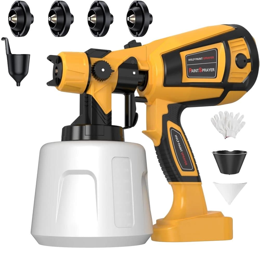 Trådlös färgspruta för18 V, elektrisk HVLP-handfärgsprutpistol med 4 munstycken, 1 000 ml tank för heminredning, staket, terrassbrädor, väggar och tak (utan batteri)