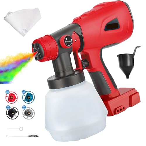 Sladdlös färgspruta kompatibel med Milwaukee 18 V batteri, elektrisk handsprutpistol med 4 munstycken 3 sprutmönster 1 000 ml behållare för väggar möbler målning (röd för Milwaukee)